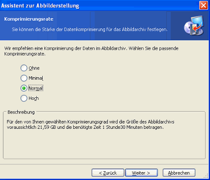 Hier gebe ich die gewünschte Komprimierung der Daten an.