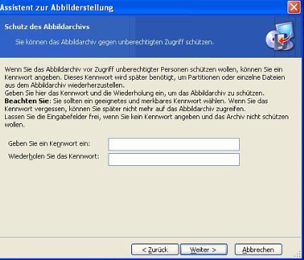 Bei Bedarf kann ich das Abbildarchiv mit einem Passwort